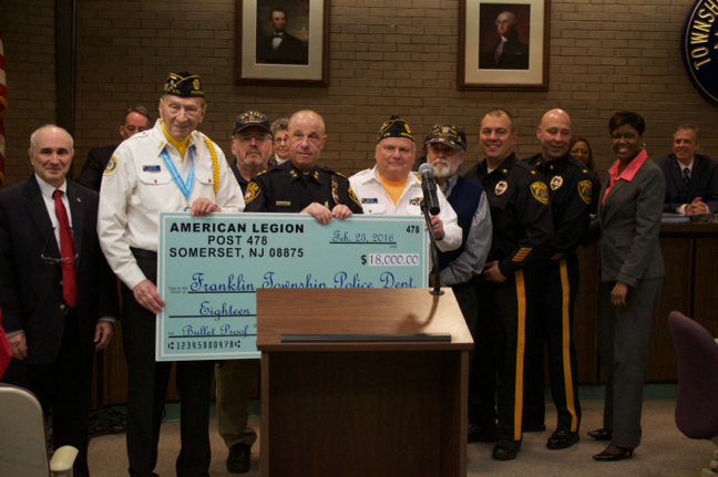 American Legion Post 478 was commended Feb. 23 by the Township Council for its donation of $18,000 to the township police department.