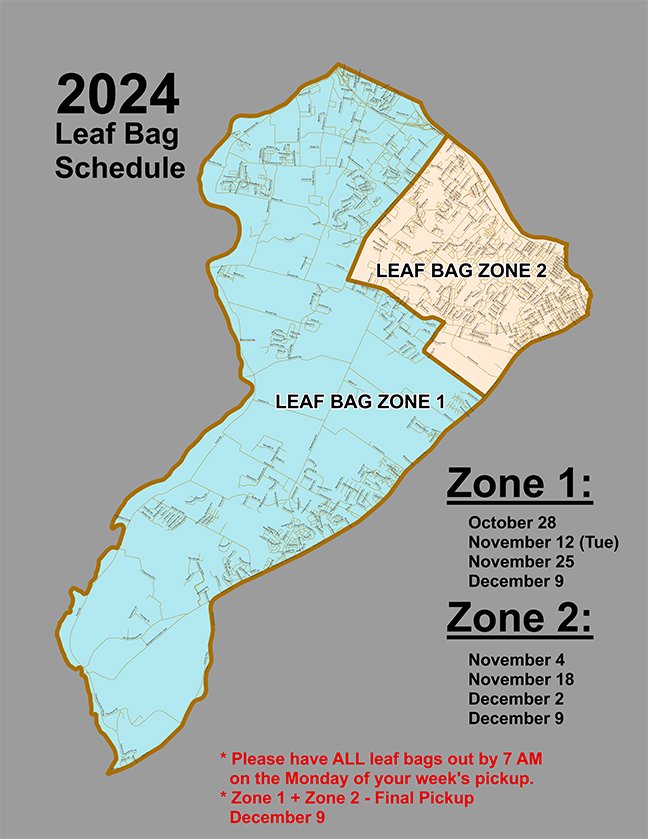 Leaves only can be placed in 30-gallon biodegradable paper bags available at home improvement stores. Leaves should be placed at curbside by 7 a.m. on the Monday of the week scheduled for pickups.