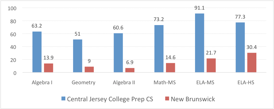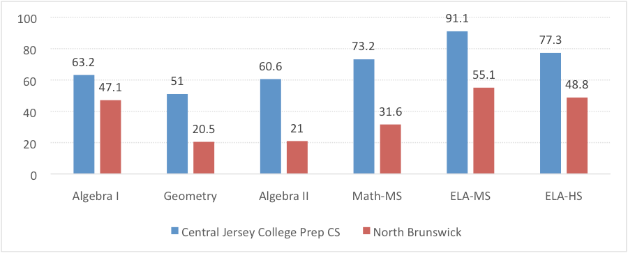 - Central Jersey College Prep Charter School is committed to helping close the achievement gap. In the 2016 PARRC exam, CJCP students outperformed their peers from every one of its sending districts (Franklin Twp., New Brunswick and North Brunswick.) in every subject.