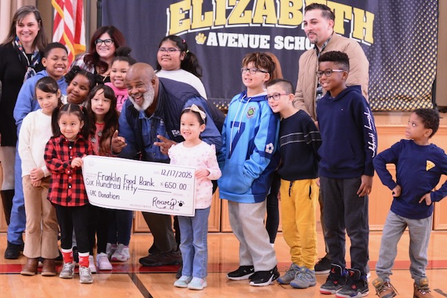Elizabeth Avenue School students and staff were all smiles December 17 as they continued their tradition of helping the Franklin Food Bank with a $650 contribution.