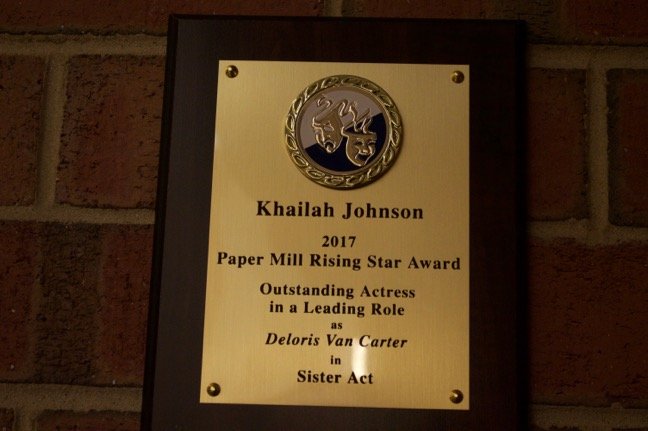 A plaque honoring the achievement of Khailah Johnson, now a freshman at Carnegie Mellon University in Pittsburgh, Pa.., was unveiled at a small ceremony. The plaque is located by the entrance to the school’s theatre.