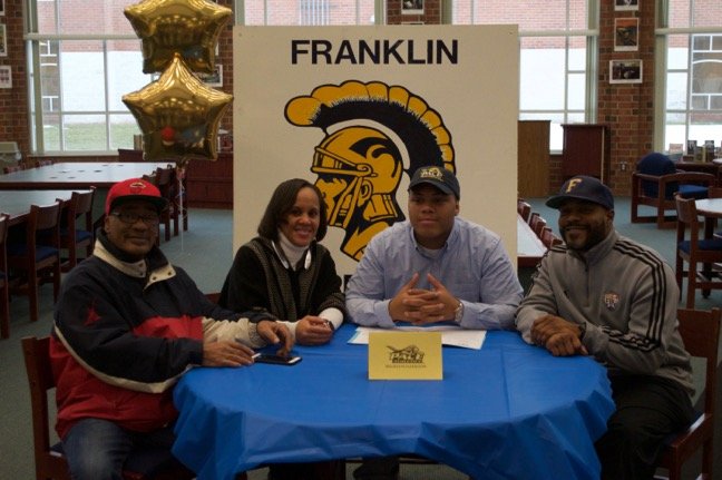 Under the watchful eyes of his mother, father and grandfather, Franklin High School football defensive tackle Brandon Harrison signed his Letter of Intent to attend Pace University in New York City.