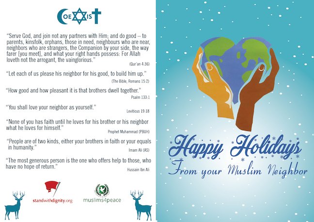 The children were given gifts and specially made, personalized greeting cards that contained quotations from the Quran and the Bible.
