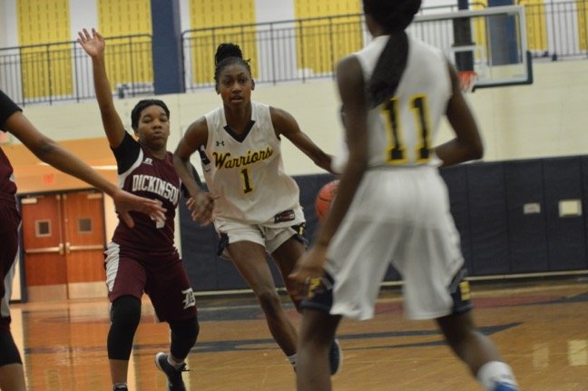 The Warriors picked up in the second quarter where they left off in the first quarter, outscoring Dickinson 19-13 to end the half with a commanding 44-24 lead.