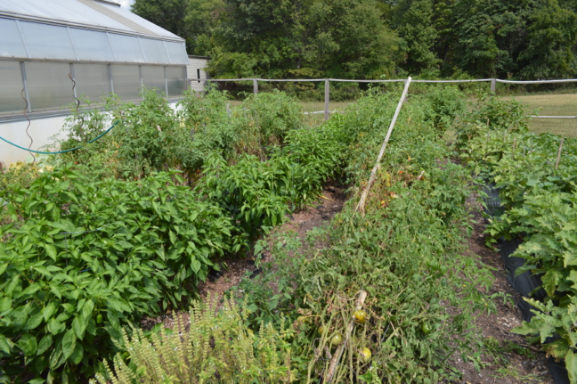 Students grow a variety of vegetables, including tomatoes, sweet potatoes, white potatoes, zucchini, eggplants, peppers, cabbage, squash and cucumbers. They also grow several herbs, such as oregano, thyme and sage.