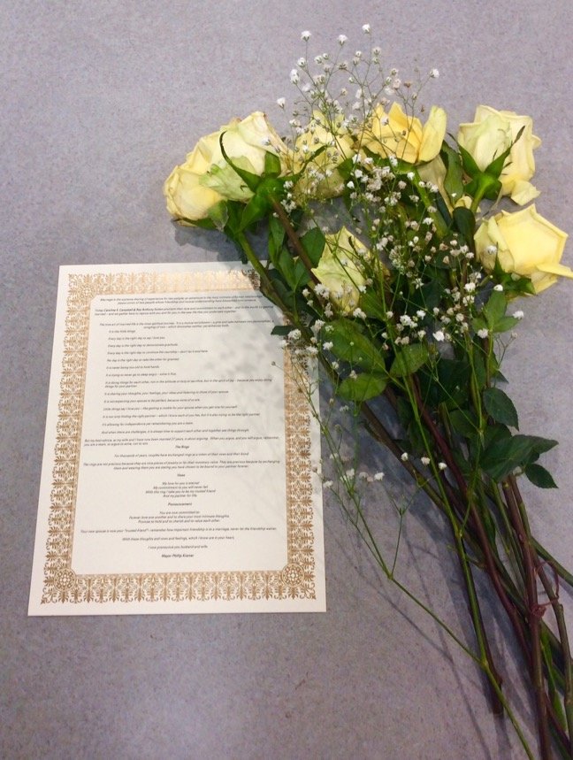 Using a written ceremony co-crafted with former township Mayor – and current Somerset County Freeholder Director – Brian Levine, Kramer began each ceremony by handing each bride a long-stemmed yellow rose and asking each bride and groom if they were ready, and then, “Are you sure?”