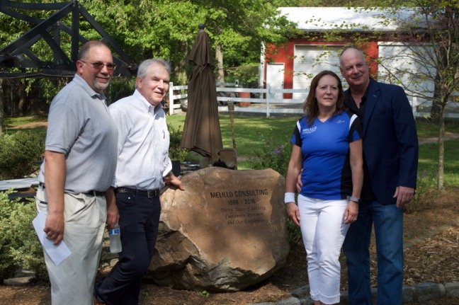 Standing around a large boulder inscribed for the occasion of the company’s 30th anniversary, Melillo, his wife Karen and company president Dan Sytsma presented a $3,000 donation to Frank Hasner, the food bank’s executive director.