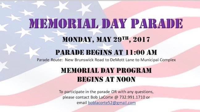 The annual township Memorial Day Parade will kick off on New Brunswick Road at 11 a.m. May 29.