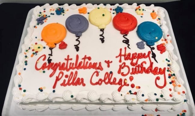 March 23 was a milestone birthday for Petey the Pillar Panther, mascot for Pillar College, and the college, both of whom celebrated birthday number 18 with a big cake and much pride.