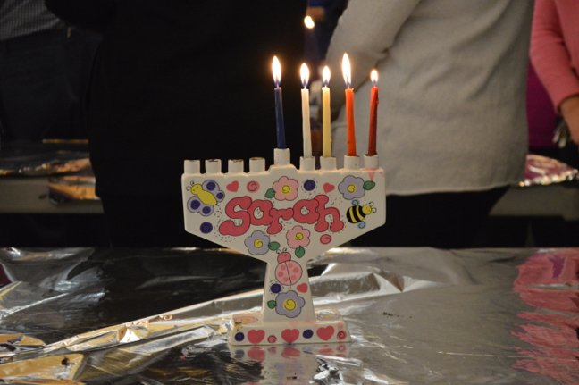 Aside from the candle lighting, attendees sang songs, played the Dreidel game, and ate.