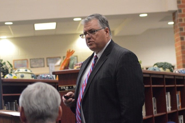 Schools Superintendent John Ravally and interim board business manager James Strimple took the board’s finance committee through the proposed budget at a March 21 special meeting, held in Franklin High School’s library.