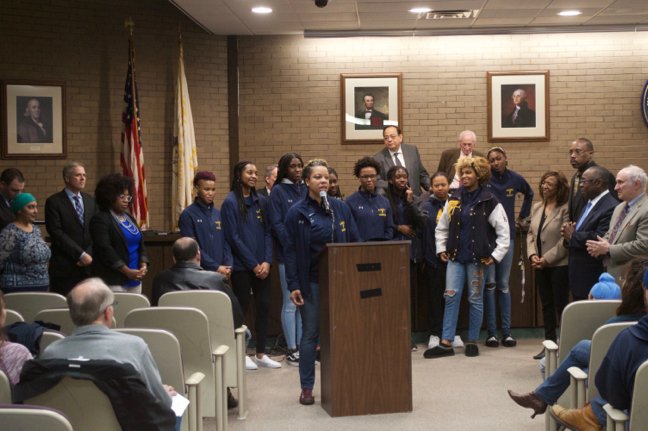 Tiana Joy Jackson, a senior point guard on the team, thanked Franklin residents for their support.
