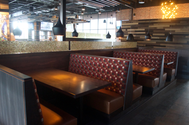 The restaurant portion is all booths; 2- and 6-seaters and larger banquettes.