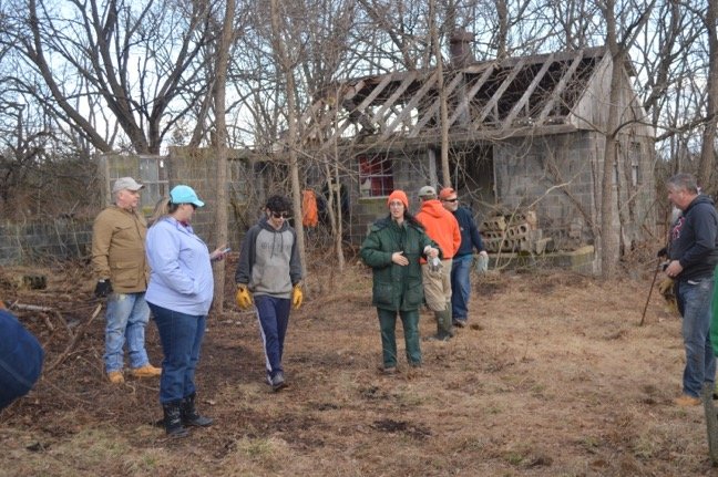 About 45 people gathered at an abandoned farm house in the Six Mile Run state park March 16 to help clean up a bit of Franklin Township history.